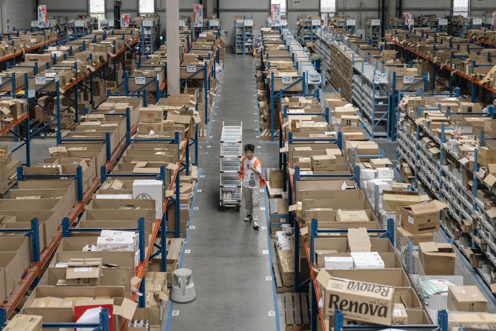 19 июля рабочий в зоне свободной торговли «Цайняо» города Иу провинции Чжэцзян. Фото корреспондента информационного агентства «Синьхуа» Ли Муцзы.